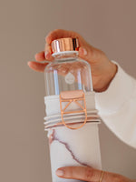 Supporting your sustainable lifestyle, this glass drinking bottle will significantly reduce your plastic waste and improve your water drinking habits so you can feel and look good.