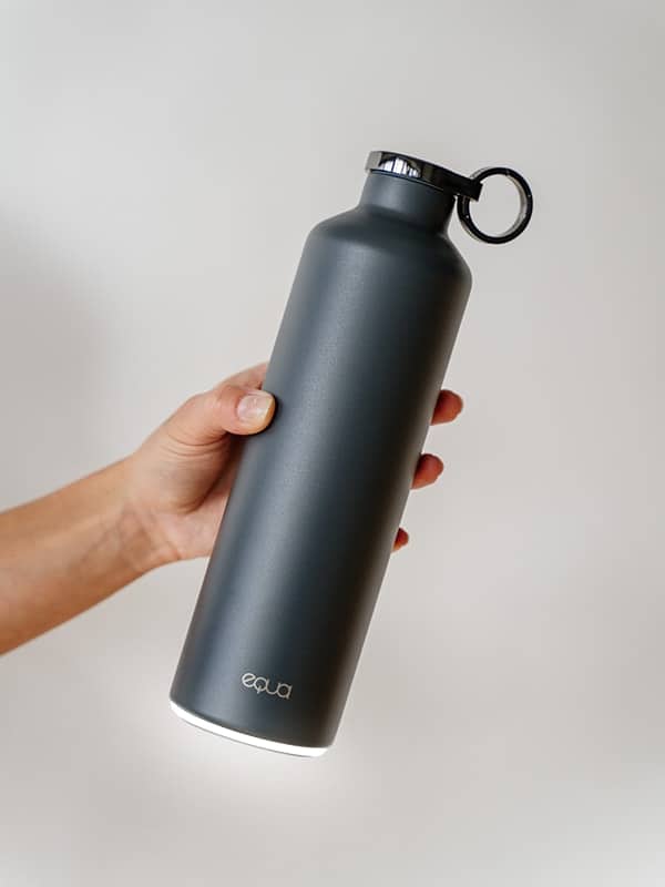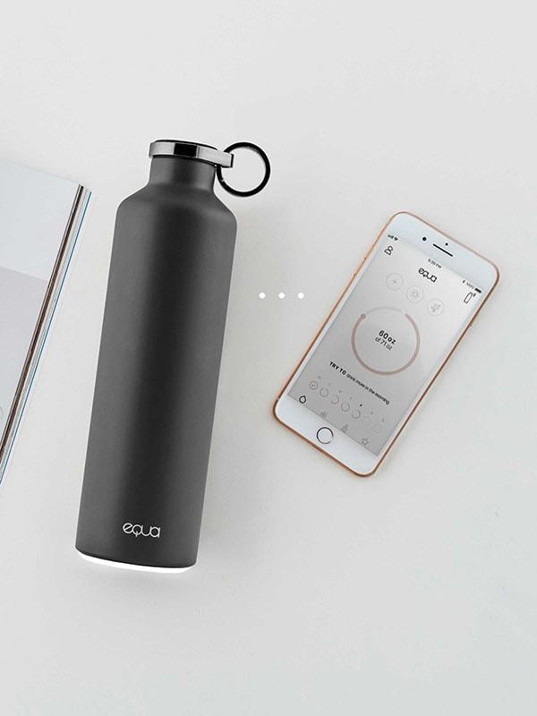 • The illuminated water bottle reminds you to take a sip of water . It syncs via Bluetooth with the EQUA app, which is available in both iOS and ANDROID app stores.