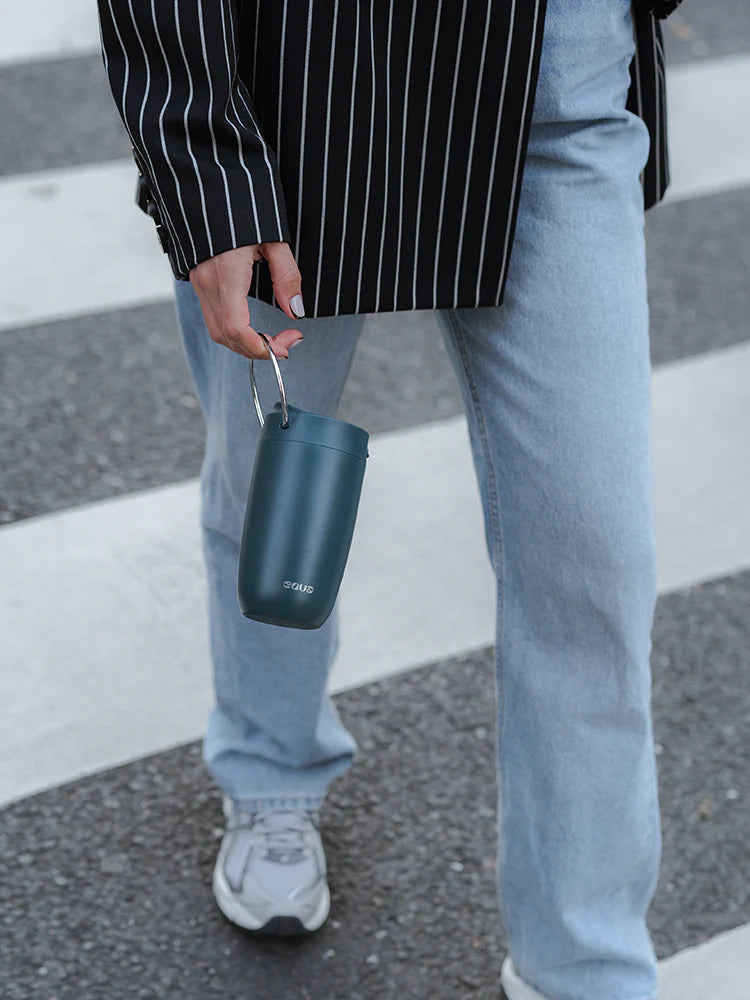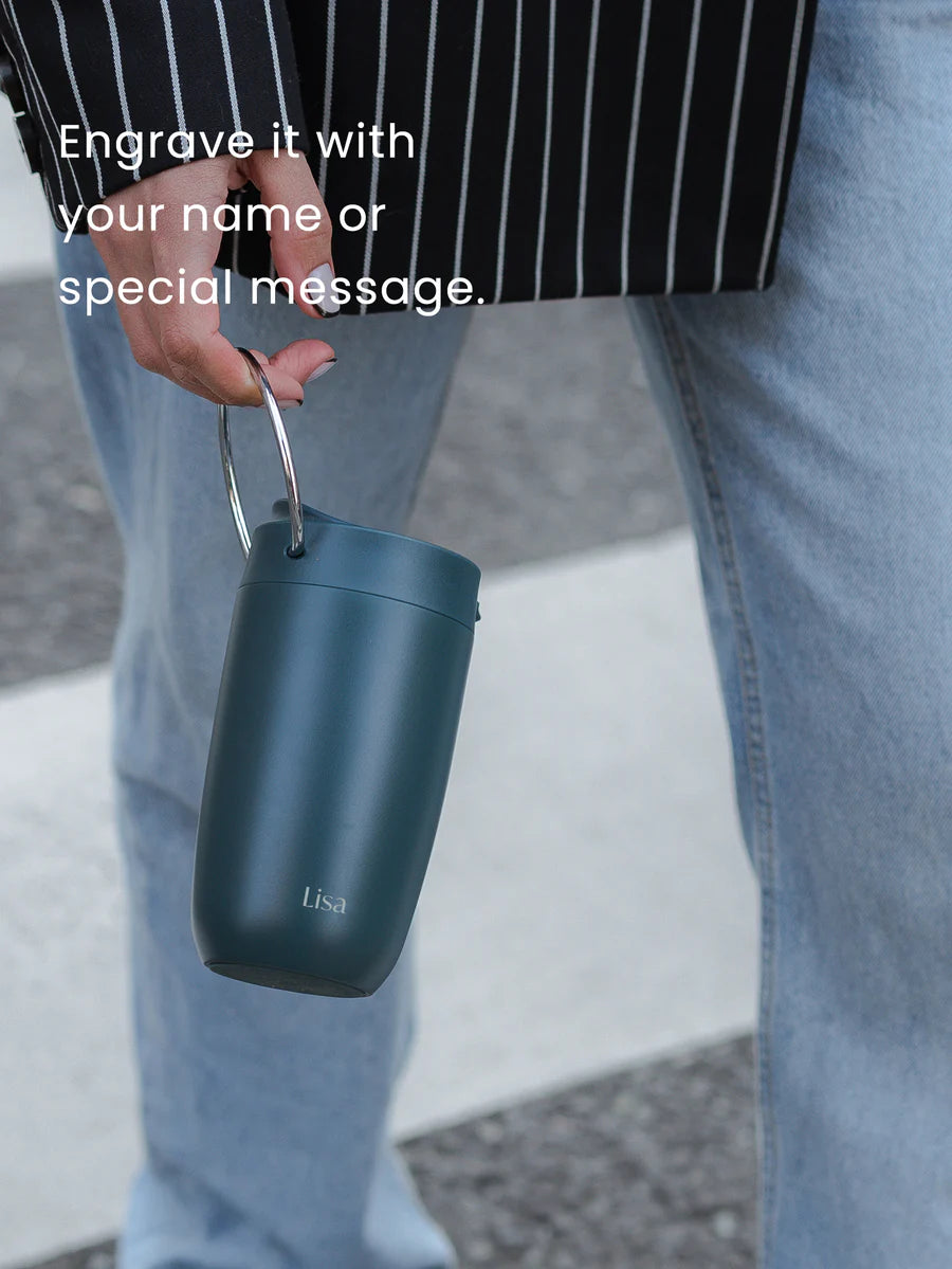 The design is thought out to the smallest detail: the stylish handle allows you to comfortably hold the cup while on the move.