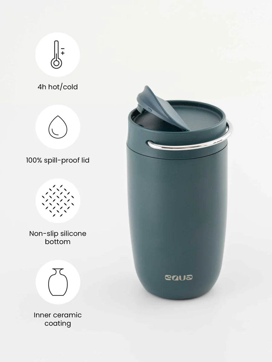 Important information: Since the lid of the cup closes tightly and is airtight, it is recommended to loosen it slightly when using it for the first time. To do this, fill it with hot water, close the lid and leave it for about 5 minutes. After that, the cup will be ready for comfortable and smooth use.
