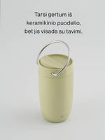 Dizainas apgalvotas iki smulkmenų: stilinga rankenėlė leidžia patogiai laikyti puodelį judant.
