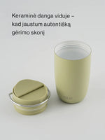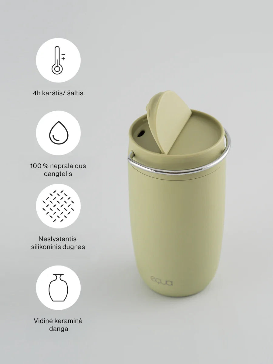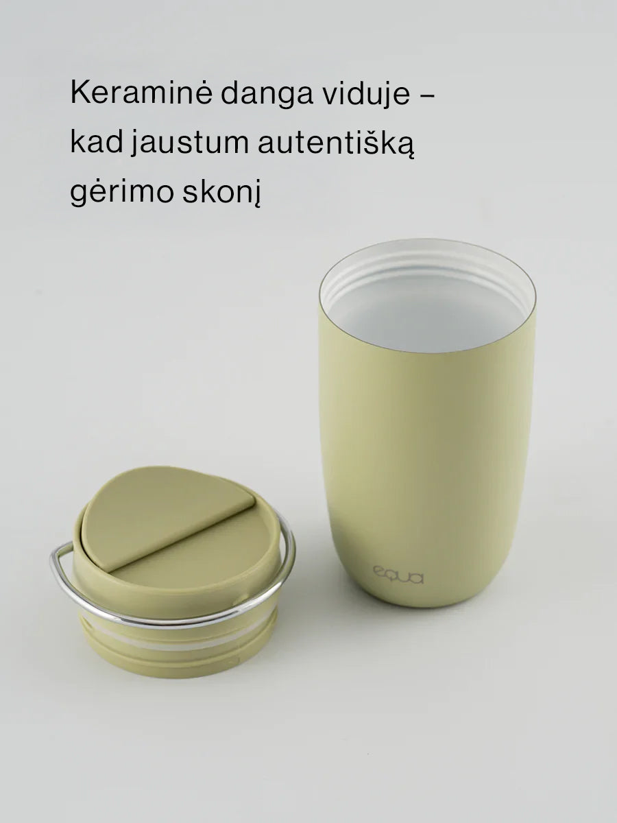 Iš tvirto nerūdijančio plieno su keramine vidaus danga, užtikrinančia tyrą skonį. Dangtelis – visiškai sandarus ir be BPA.