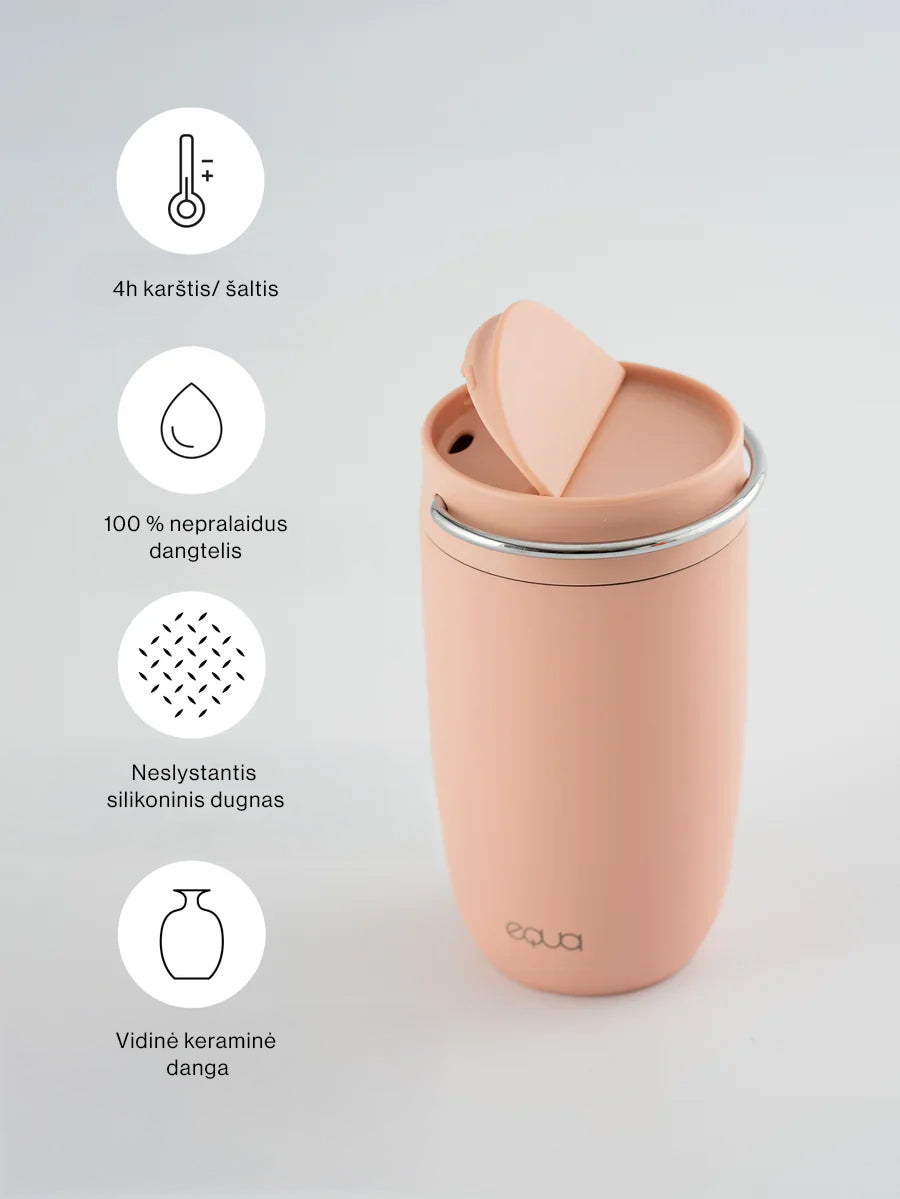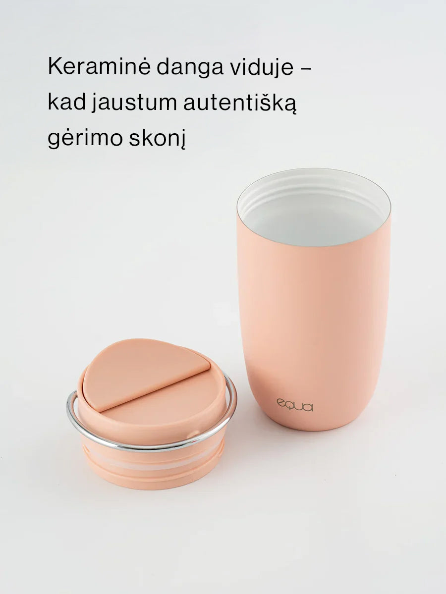Iš tvirto nerūdijančio plieno su keramine vidaus danga, užtikrinančia tyrą skonį. Dangtelis – visiškai sandarus ir be BPA.